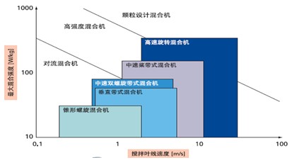 產品通過錐形混合腔頂部投入,投料范圍在30%-100%之間,設備中間有一個頂部驅動的高速轉軸,因此便去除了在產品區域的密封設計以及軸承。在軸上有緊貼內壁的槳式混合原件。通過高速旋轉的攪拌槳和錐形內倉的共同作用將產品由底部帶至混合腔的上部。當產品達到頂部的時候又重新回落到混合倉中心,如此的產品的方式形成了一種快速的宏觀混合。