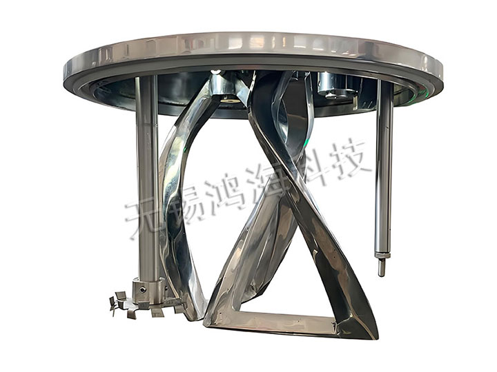 在行星架上有一刮壁刀隨行星架轉(zhuǎn)動(dòng),緊貼桶壁不斷的刮拭,桶壁經(jīng)大型立車精加工后,再經(jīng)大型自動(dòng)拋光機(jī)拋光,確保行星架上的活動(dòng)刮刀在旋轉(zhuǎn)時(shí)把桶壁的物料完全刮掉,使桶壁無滯留料,提高混合效果。
